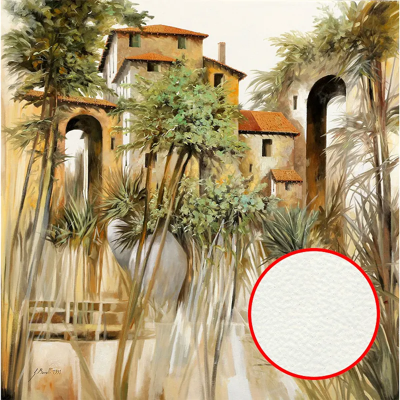 Фреска Ortograf Городской пейзаж живопись 11824 Фактура флок FLK Флизелин (2,7*2,7) Бежевый/Коричневый/Зеленый, Замки/Деревья/Живопись
