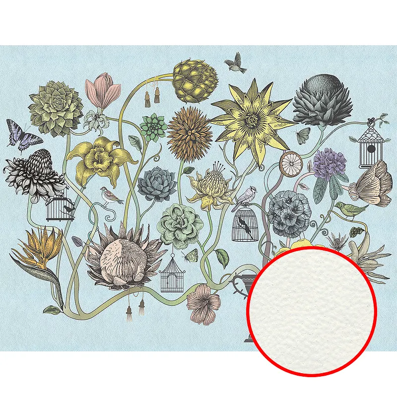 Фреска Ortograf Grafika Natura 31530 Фактура флок FLK Флизелин (3,5*2,7) Голубой/Разноцветный, Цветы/Абстракция