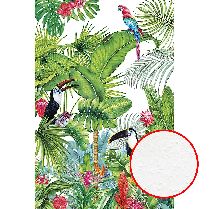 Фреска Ortograf Its Jungle 33670 Фактура бархат FX Флизелин (2*3) Зеленый/Разноцветный, Листья/Птицы/Цветы