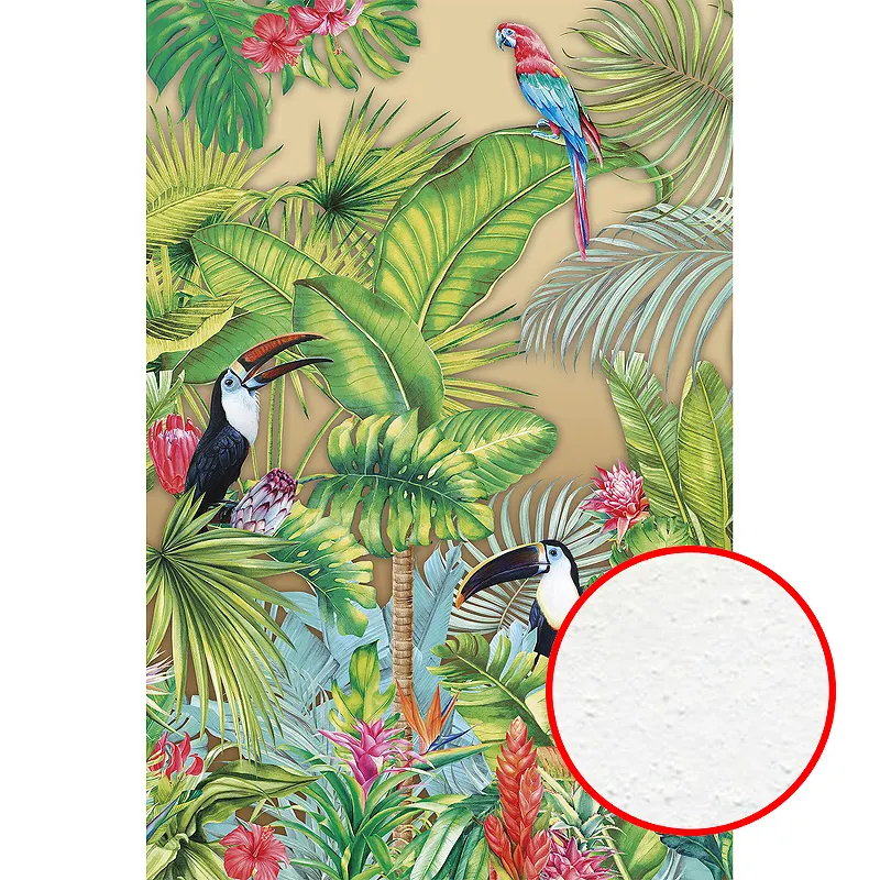 Фреска Ortograf Its Jungle 33672 Фактура бархат FX Флизелин (2*3) Бежевый/Разноцветный, Листья/Птицы/Цветы