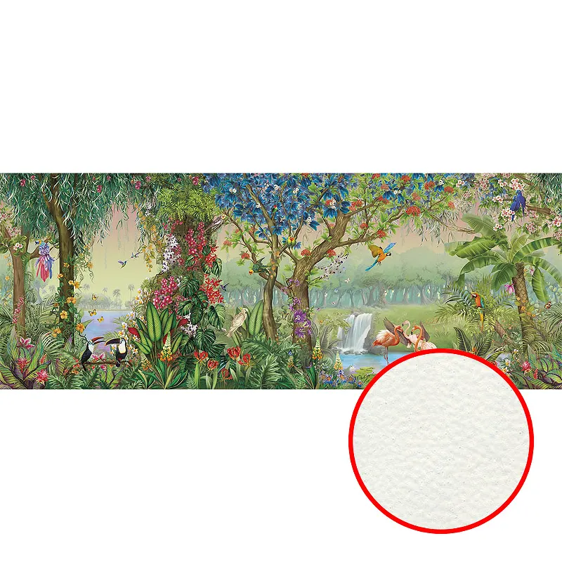 Фреска Ortograf Its Jungle 33677 Фактура флок FLK Флизелин (7,8*3) Зеленый/Разноцветный, Деревья/Птицы