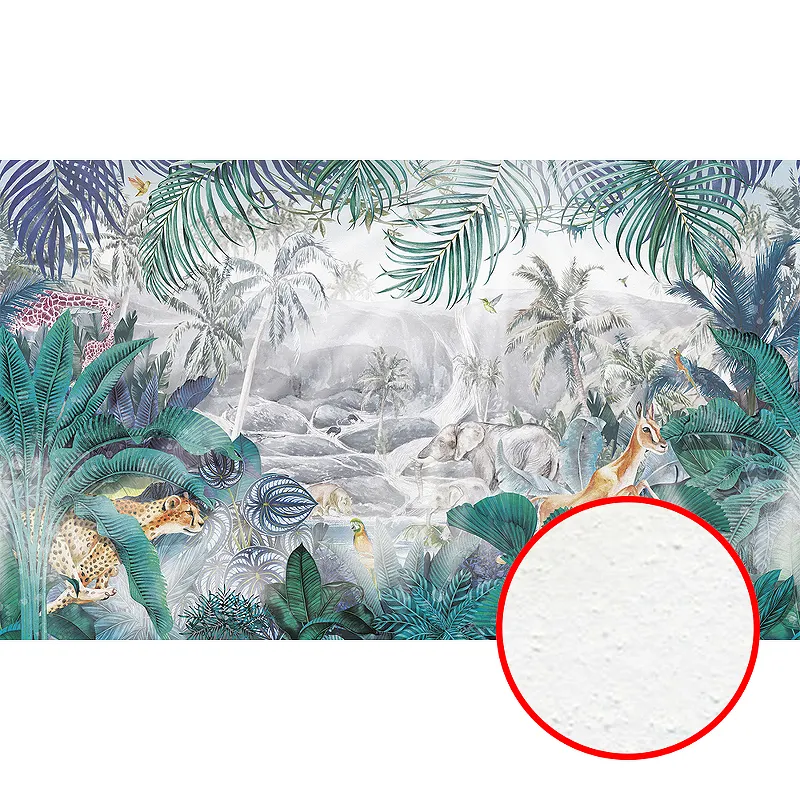 Фреска Ortograf Its Jungle 8316 с фактурой бархат FX — это уникальное решение для создания стильного интерьера. Данная фреска, выполненная на флизелиновой основе, сочетает в себе изысканный бирюзовый и серый цвета, а также неповторимые рисунки деревьев, листьев и животных. Это идеальный выбор для внутренней отделки помещений, где требуется акцент на природную тематику.