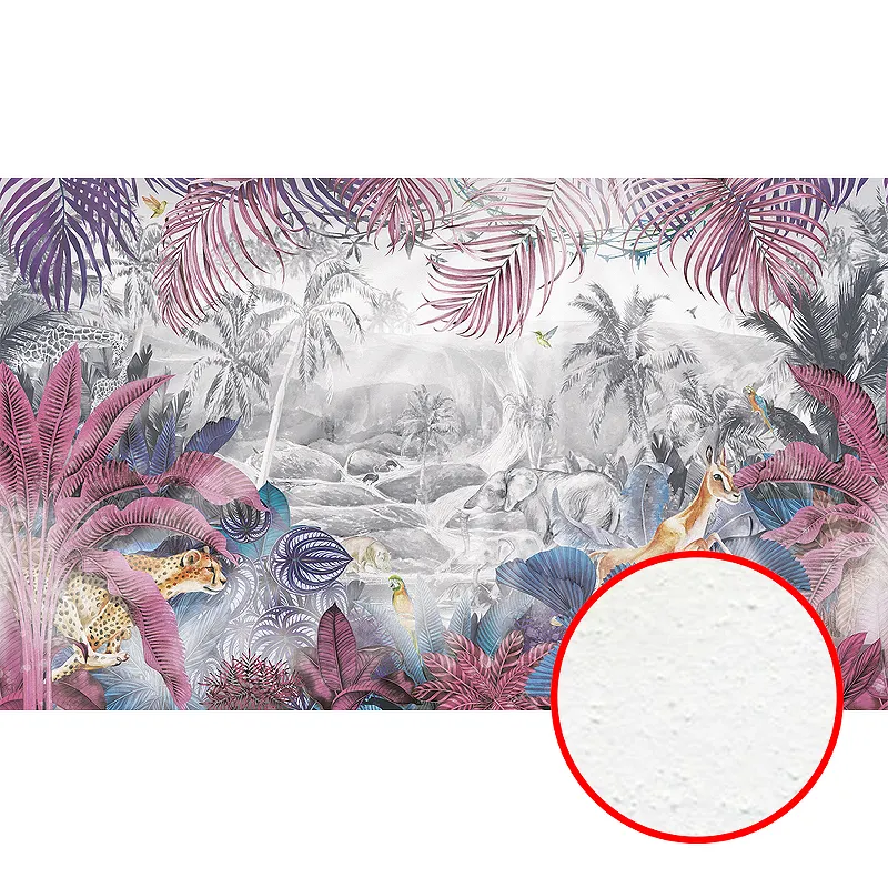Фреска Ortograf Its Jungle 8317 Фактура бархат FX Флизелин (5*3) Розовый/Бирюзовый/Серый, Деревья/Листья/Животные