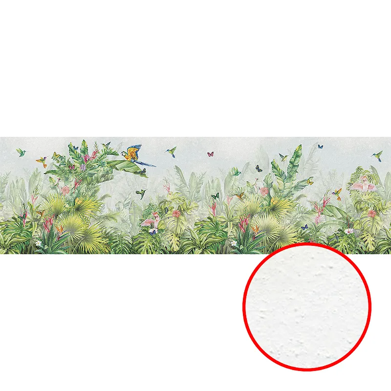 Технические характеристики Фреска Ortograf Its Jungle 8321 Фактура бархат FX Флизелин (10*3) Зеленый/Разноцветный, Листья/Птицы/Бабочки