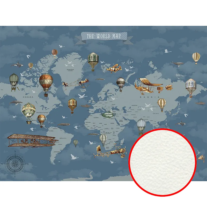 Фреска Ortograf Карты мира 33314 Фактура флок FLK Флизелин (3,6*2,7) Синий, Воздушные шары/Самолеты/Карты