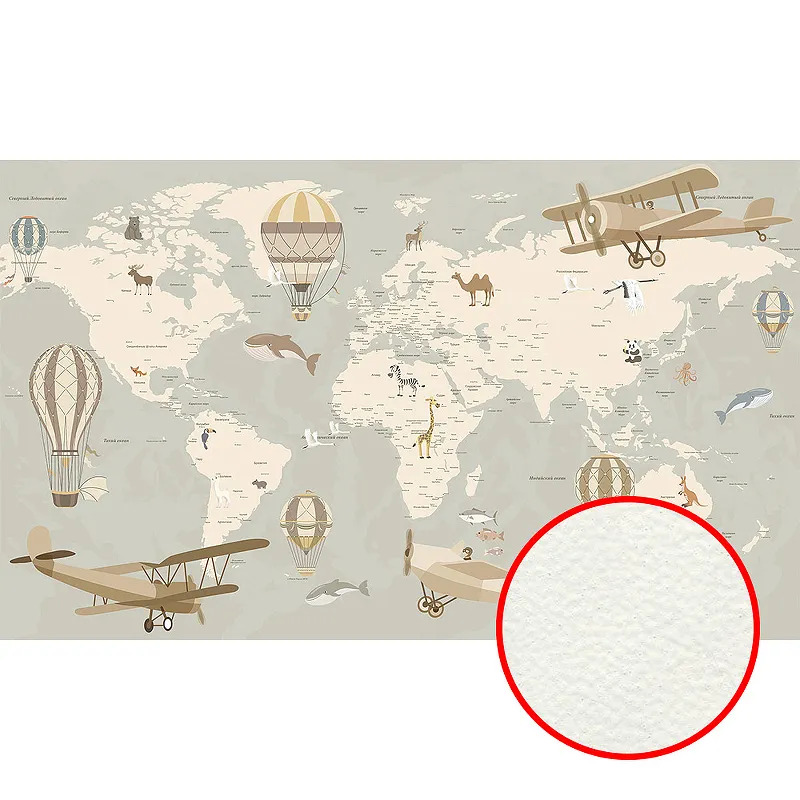 Фреска Ortograf Карты мира 33457 Фактура флок FLK Флизелин (4,5*2,7) Серый/Бежевый, Воздушные шары/Самолеты/Карты
