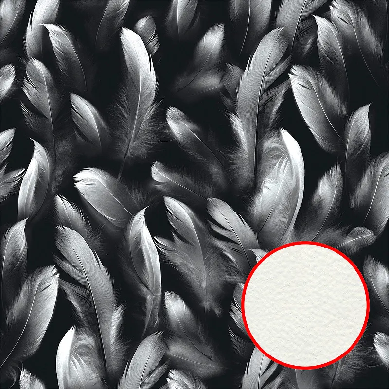 - Универсальность применения в интерьере: Черно-белая палитра и рисунок "Перья" легко вписываются в любой интерьер, добавляя элегантности и стиля.