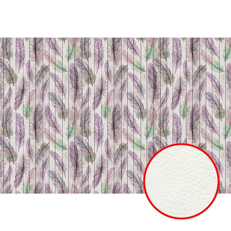 Фреска Ortograf Levity 33380 Фактура флок FLK Флизелин (4*2,7) Бежевый/Сиреневый/Зеленый, Перья