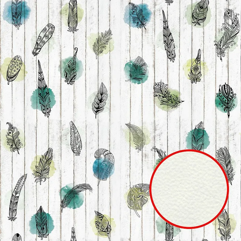 Фреска Ortograf Levity 33390 Фактура флок FLK Флизелин (2,7*2,7) Бежевый/Зеленый/Бирюзовый, Перья