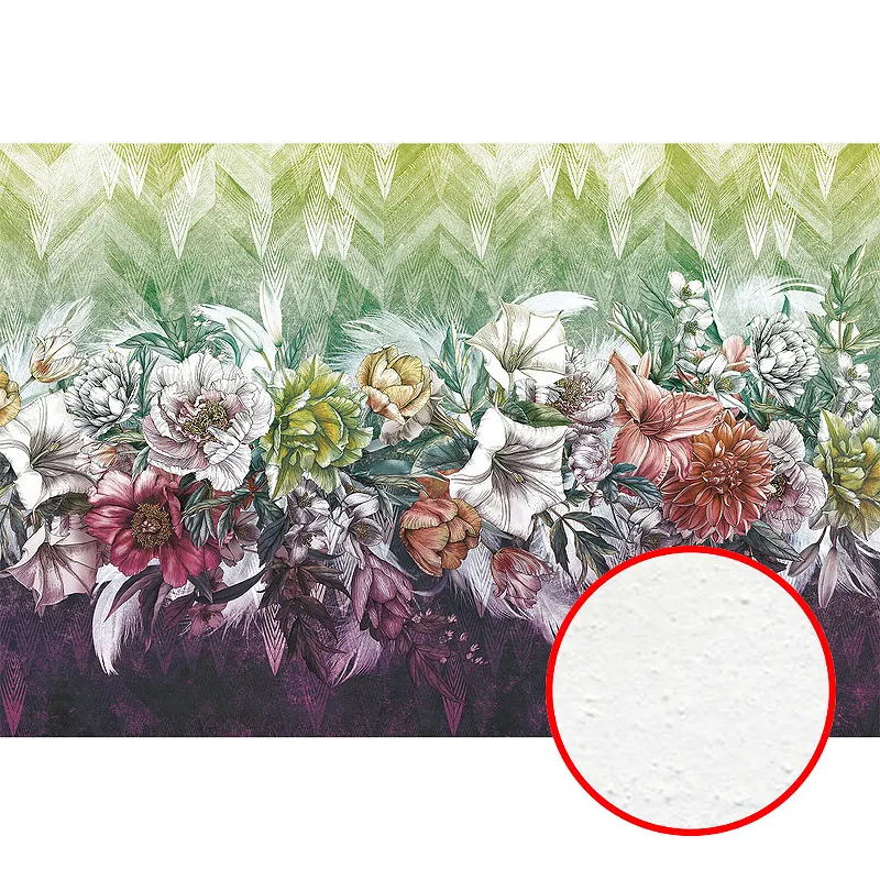 Фреска Ortograf Levity 33395 Фактура бархат FX Флизелин (4*2,7) Зеленый/Разноцветный, Цветы