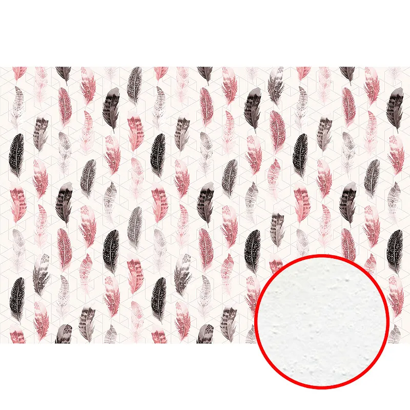 Фреска Ortograf Levity 33396 Фактура бархат FX Флизелин (4*2,7) Белый/Розовый/Чёрный, Перья/Геометрия