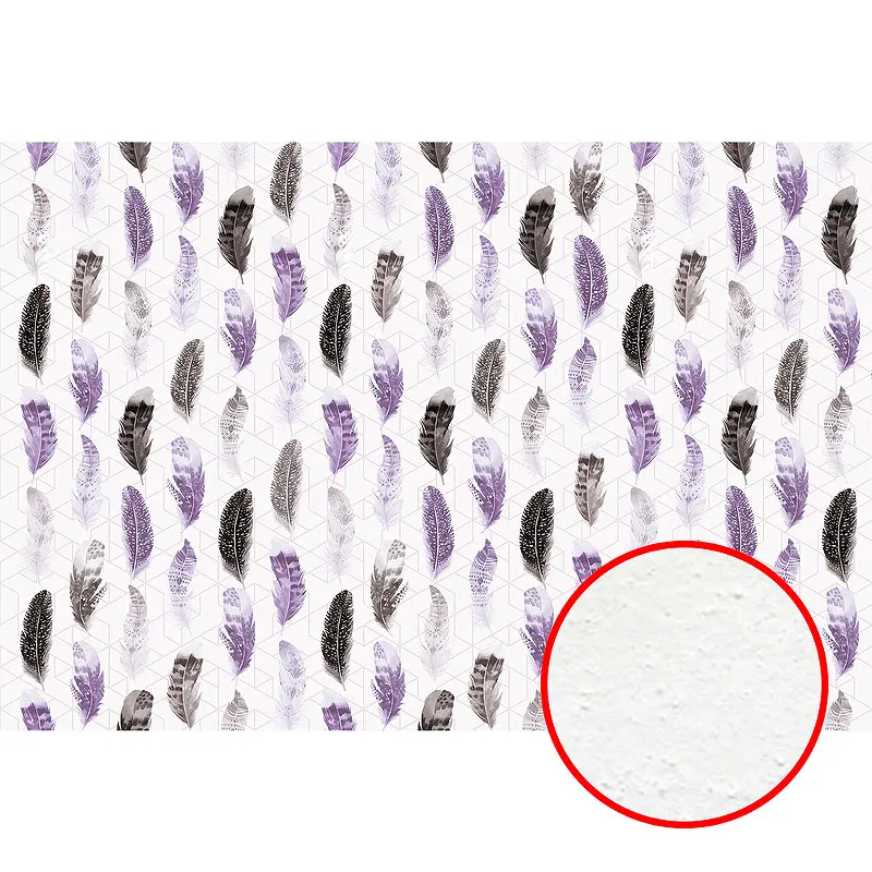 - Флизелин (4*2,7) Белый/Фиолетовый/Черный, Перья/Геометрия