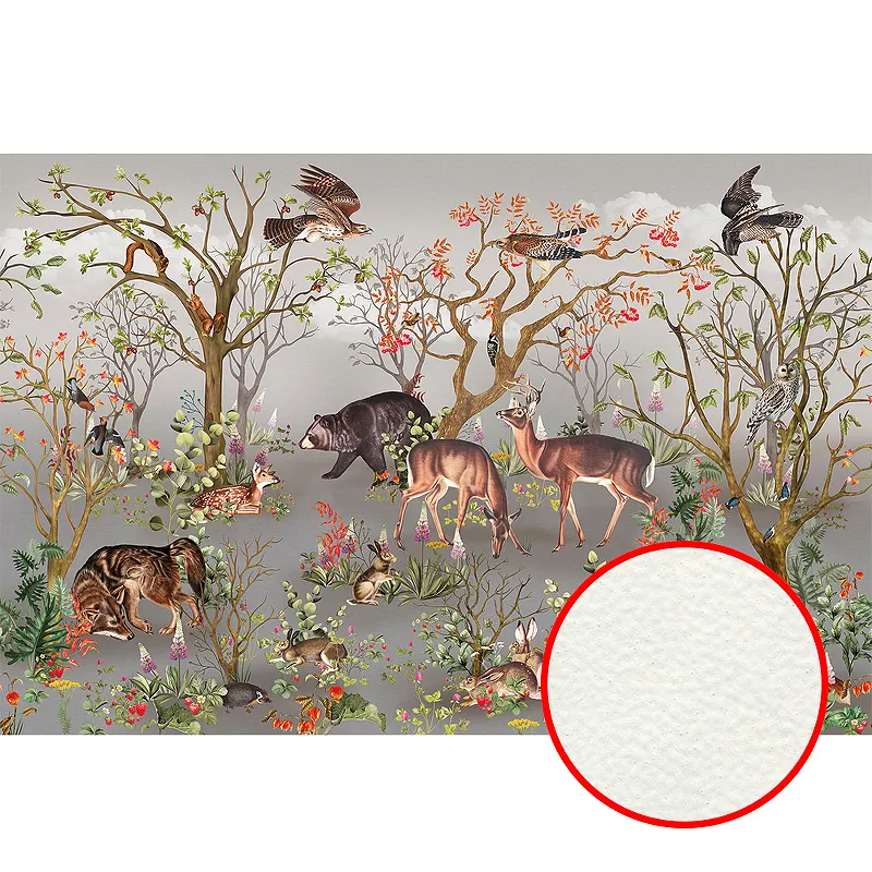 Фреска Ortograf Miracle 33850 Фактура флок FLK Флизелин (4,5*3) Серый/Разноцветный, Деревья/Животные/Птицы