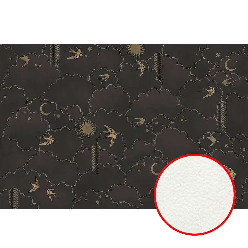 Фреска Ortograf Miracle 33856 Фактура флок FLK Флизелин (4,5*3) Черный/Бежевый, Птицы/Облака/Абстракция