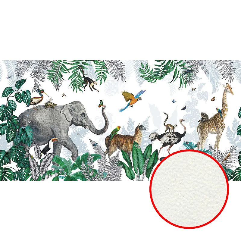 Фреска Ortograf Miracle 33865 Фактура флок FLK Флизелин (6*3) Белый/Разноцветный, Листья/Животные/Птицы
