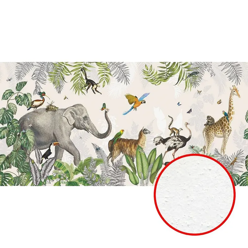 - Флизелиновая фреска размером 6х3 метра с рисунком "Листья, животные, птицы".