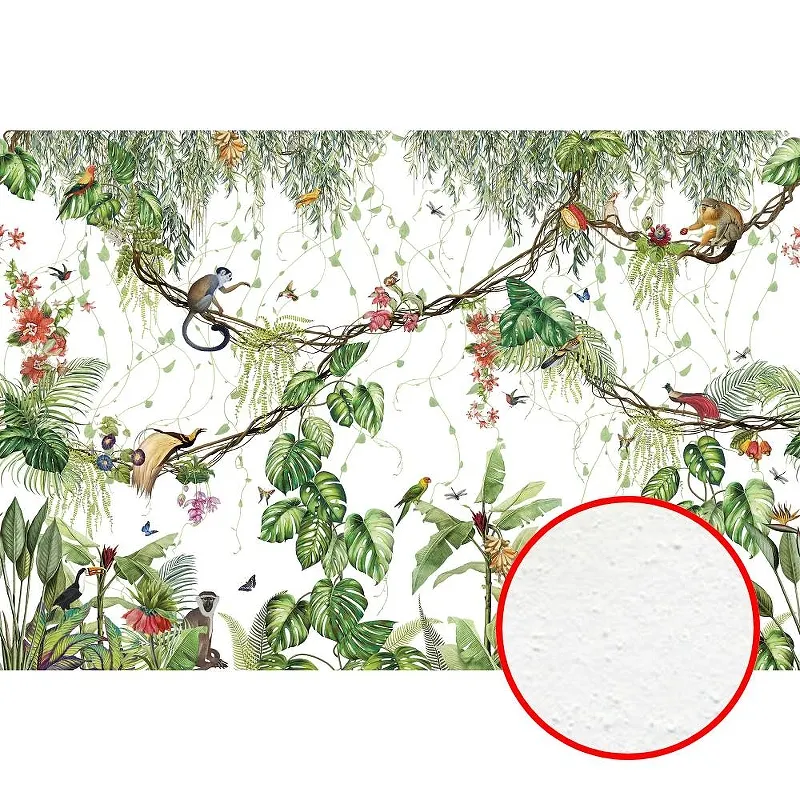 - Богатый дизайн: Настенная фреска с изображениями птиц, животных и листьев оживит любой интерьер, добавив ему динамику и естественность.