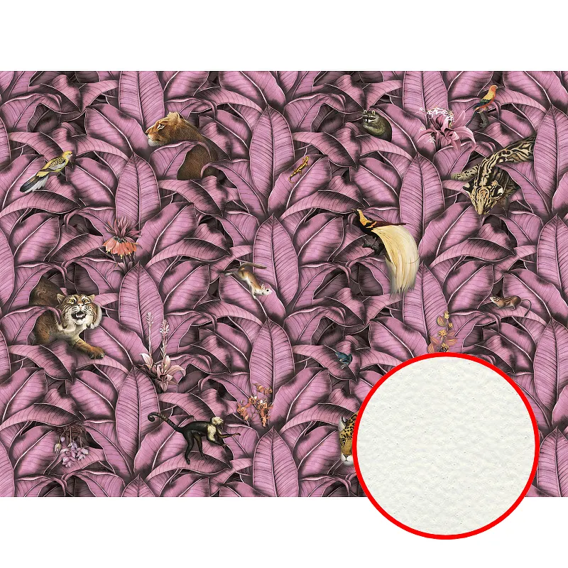 Фреска Ortograf Miracle 33871 Фактура флок FLK Флизелин (3,6*2,75) Розовый, Листья/Животные