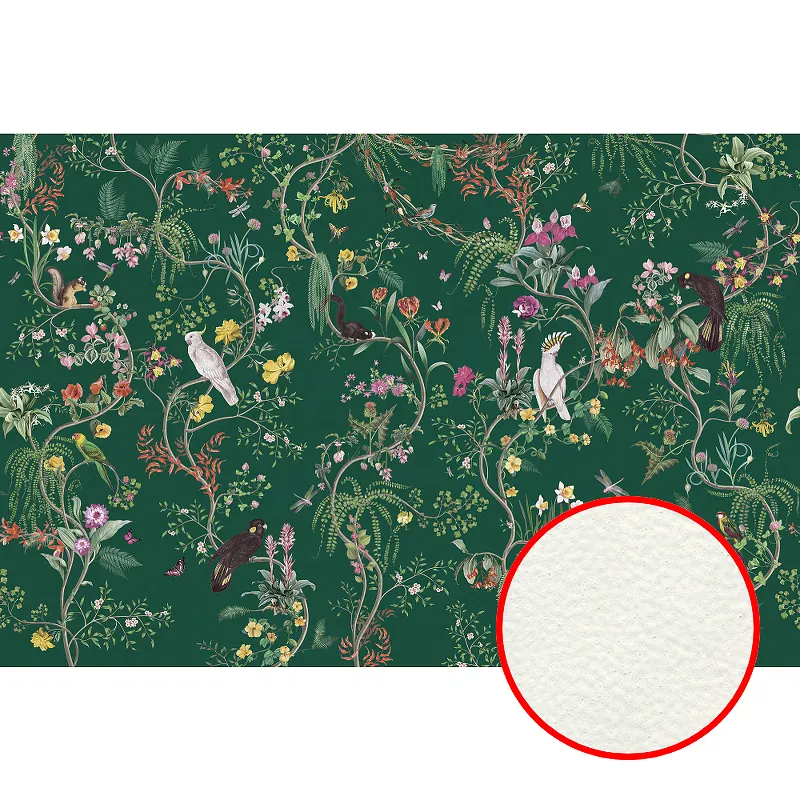 Фреска Ortograf Miracle 33874 Фактура флок FLK Флизелин (4,5*3) Зеленый/Разноцветный, Птицы/Цветы