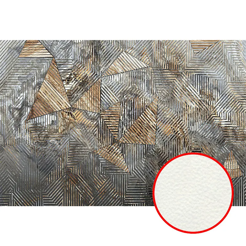 Флизелиновая основа с фактурой флок FLK, серо-золотая цветовая палитра, рисунок — абстракция и геометрия.