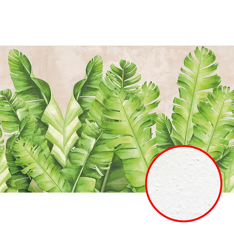 Фреска Ortograf Oasis 32700 Фактура бархат FX Флизелин (4,3*2,7) Бежевый/Зеленый, Листья
