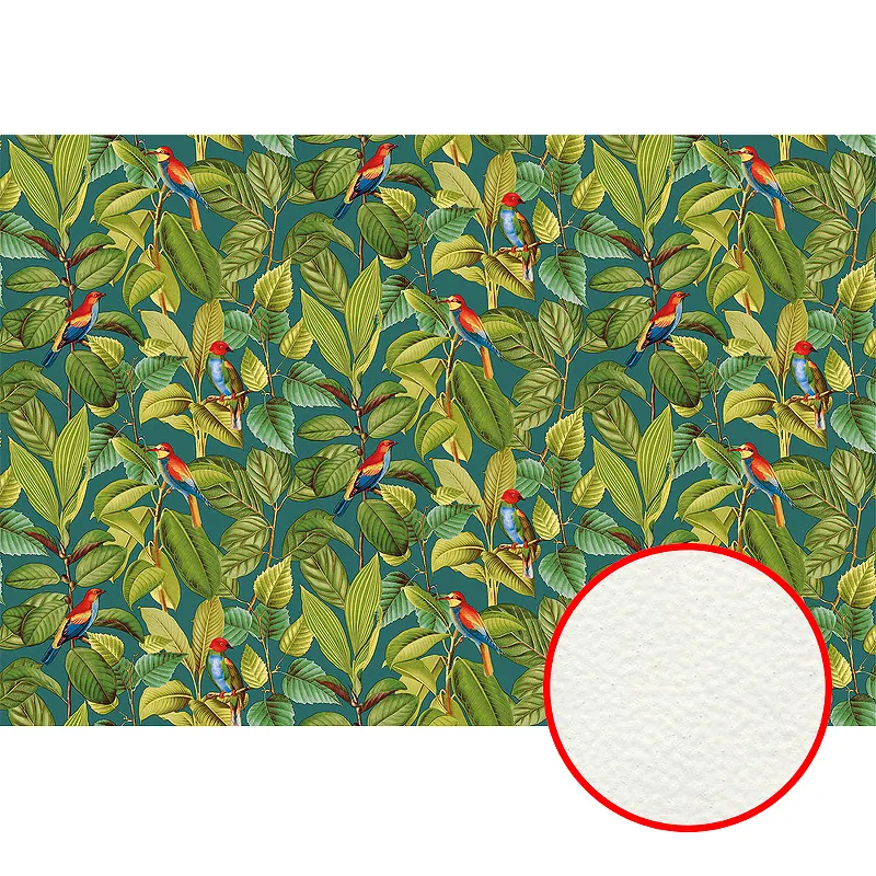 Фреска Ortograf Oasis 32720 Фактура флок FLK Флизелин (4*2,7) Синий/Зеленый, Листья/Птицы