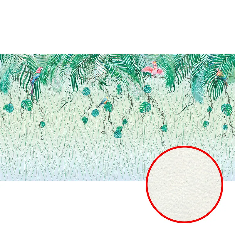 Фреска Ortograf Oasis 32736 Фактура флок FLK Флизелин (5*2,7) Зеленый, Листья/Птицы