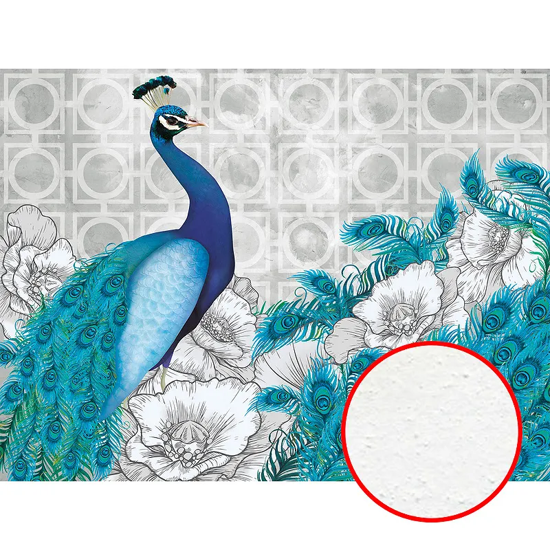Фреска Ortograf Paradise 32231 Фактура бархат FX Флизелин (3,6*2,7) Серый/Голубой, Птицы/Цветы/Геометрия