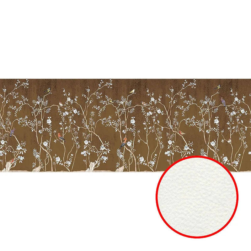 Фреска Ortograf Silver&Gold 32807 Фактура флок FLK Флизелин (7,25*2,7) Коричневый, Цветы/Птицы