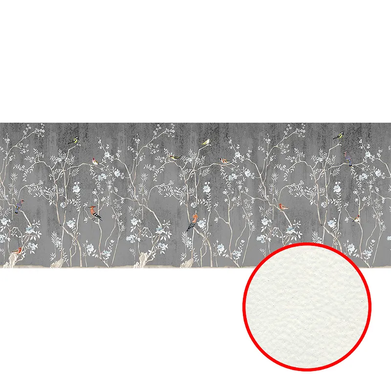 Фреска Ortograf Silver&Gold 32809 Фактура флок FLK Флизелин (7,25*2,7) Серый, Цветы/Птицы