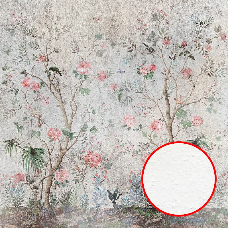 Фреска Ortograf Silver&Gold 32815 Фактура бархат FX Флизелин (2,7*2,7) Серый/Разноцветный, Деревья/Цветы/Птицы