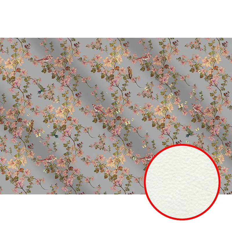 Фреска Ortograf Silver&Gold 32819 Фактура флок FLK Флизелин (4*2,7) Серый/Разноцветный, Цветы/Птицы