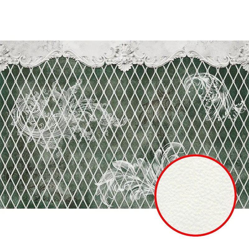 Фреска Ortograf Splendo 31720 Фактура флок FLK Флизелин (4*2,7) Зеленый/Белый, Вензель/Ромб