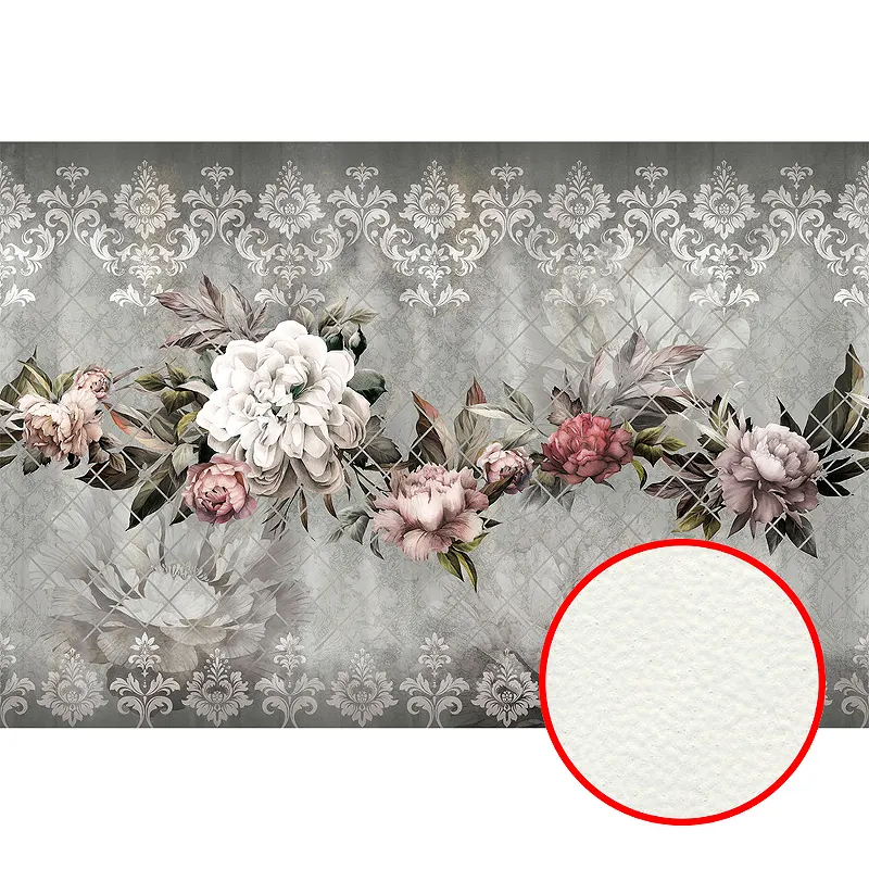 Фреска Ortograf Splendo 31736 Фактура флок FLK Флизелин (4*2,7) Серый/Зеленый, Цветы