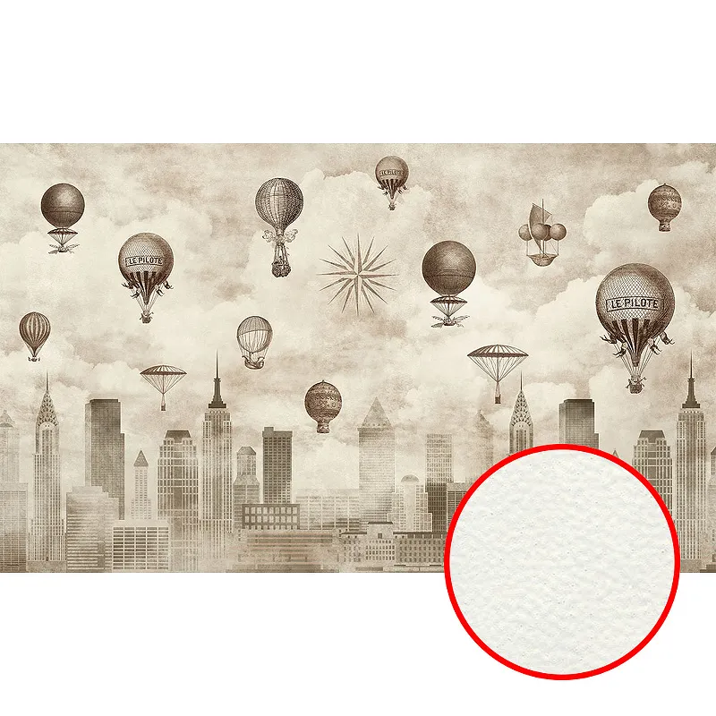 - Фреска: Флизелиновая основа 5*3 м, фактура флок FLK, бежевый цвет, рисунок "Город".