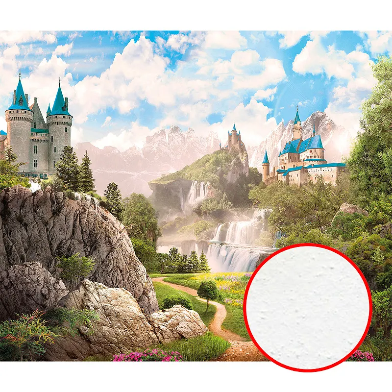 - Декоративное оформление интерьера: Фреска с изображением замков, гор и водопадов добавляет в интерьер чувство простора и гармонии.