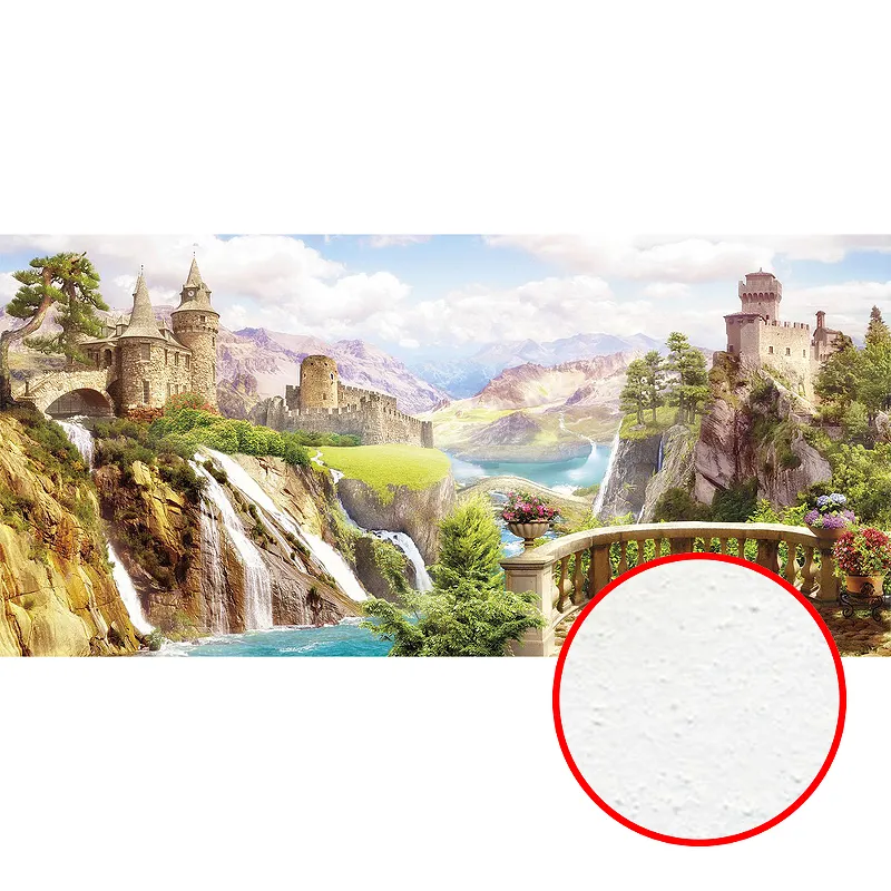 - Уникальный дизайн: Фреска категории декоративные покрытия подчеркнёт ваш стиль благодаря изображению замков и водопадов.