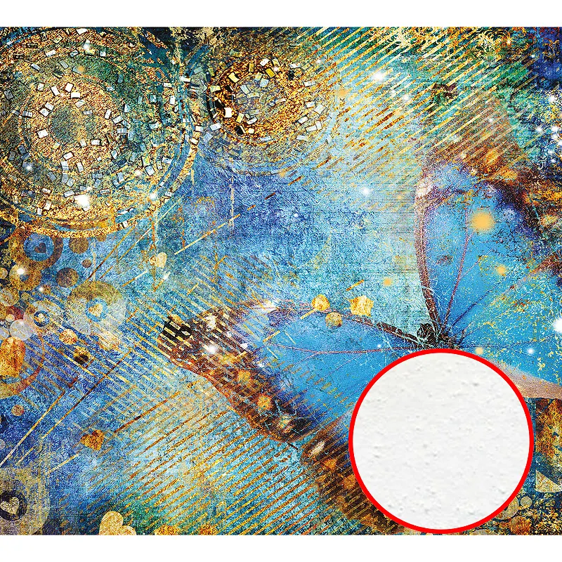 Фреска Ortograf Животные 3382 Фактура бархат FX Флизелин (3*2,7) Голубой/Золото, Бабочки/Абстракция