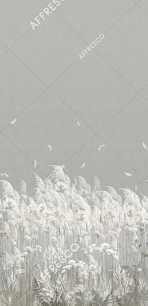 Фреска Affresco из коллекции Art Fabric представляет собой стильное решение для декора интерьера. Изображение растений и веток на сером фоне обеспечивает уютную атмосферу в помещениях, таких как гостиная и спальня.