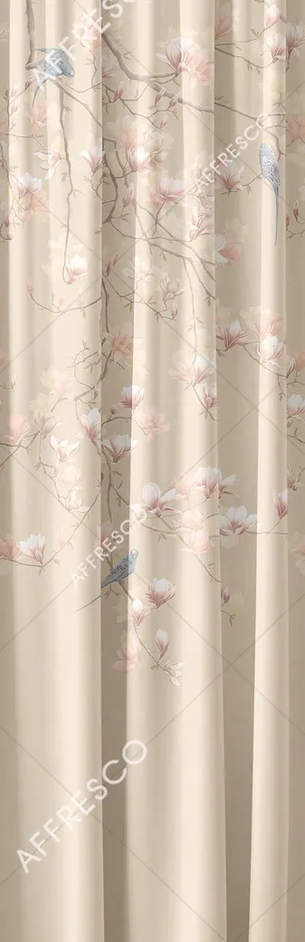 Фрески Affresco из коллекции Art Fabric Ткани представляют собой текстильные обои с изображением природных мотивов. Они подходят для оформления стен в гостиной и спальне, создавая атмосферу уюта и гармонии.