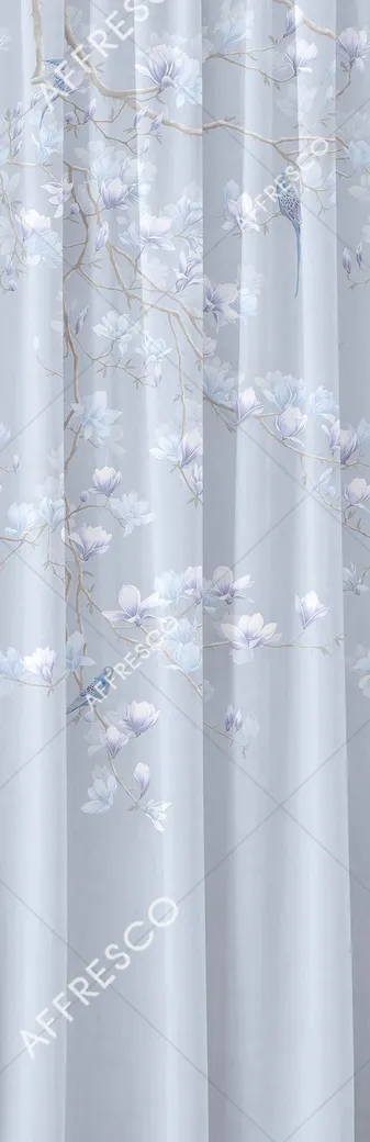 Фрески Affresco из коллекции Art Fabric Ткани представляют собой уникальный продукт, сочетающий традиционные живописные техники и современные технологии. Эта фреска с изображением цветов и птиц идеально подходит для оформления гостиных и спален, добавляя атмосферу свежести и уюта.