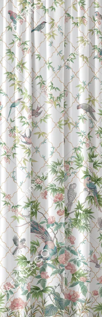- Разнообразие рисунков: Включает птиц, растения, ветки и ромбы, что добавляет разнообразие в интерьер.