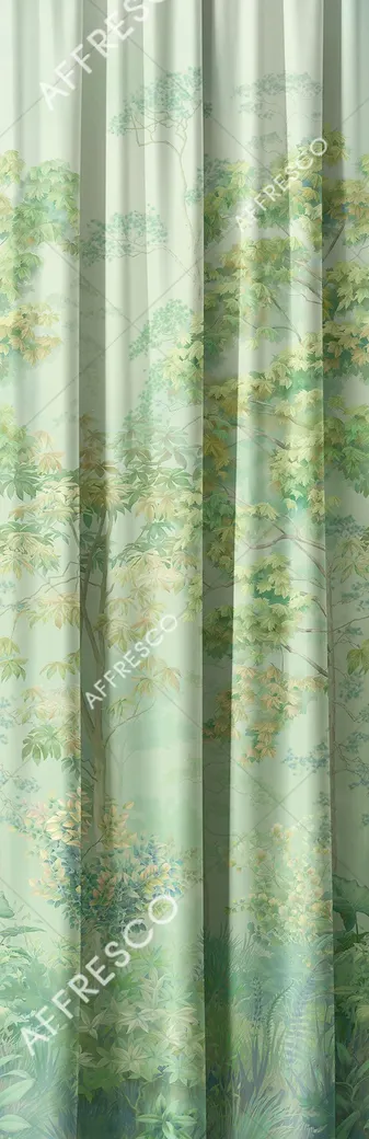 Фрески Affresco из коллекции Art Fabric Ткани представляют собой рулоны с точной имитацией фресок. Они выполнены в зеленом цвете с изображением растений, веток и листьев, что создает спокойную атмосферу в интерьере.