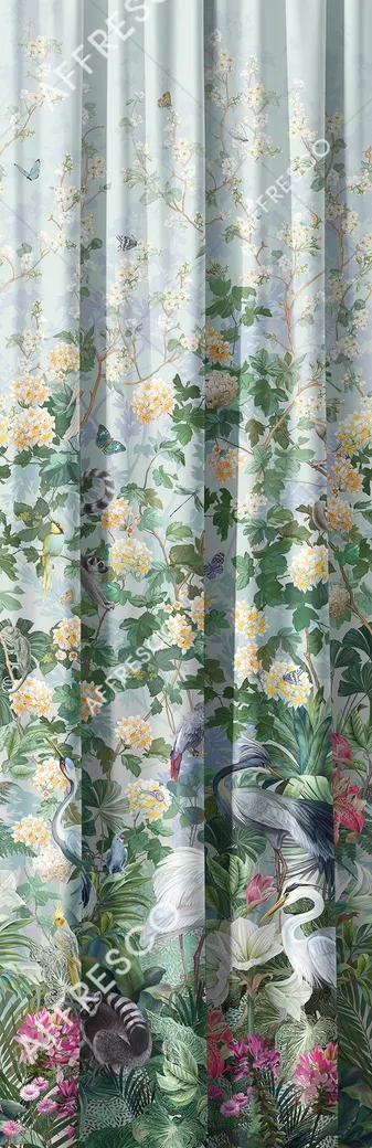 Фрески Affresco из коллекции Art Fabric Ткани представляют собой рулонный декор, имитирующий классическую фреску. Данный продукт подходит для оформления различных помещений, включая спальню и гостиную, и выполнен в голубой и разноцветной гамме.