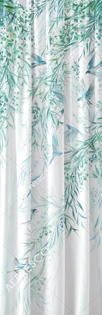 - Разнообразный рисунок: Включает изображения птиц, растений и веток, создавая гармоничную атмосферу.