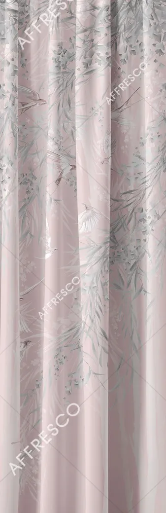 Фрески Affresco из коллекции Art Fabric Ткани представляют собой рулонные обои с уникальным рисунком, вдохновлённым природой. Использование текстильной основы обеспечивает высокую прочность и долговечность, а светлые тона делают интерьер более уютным.