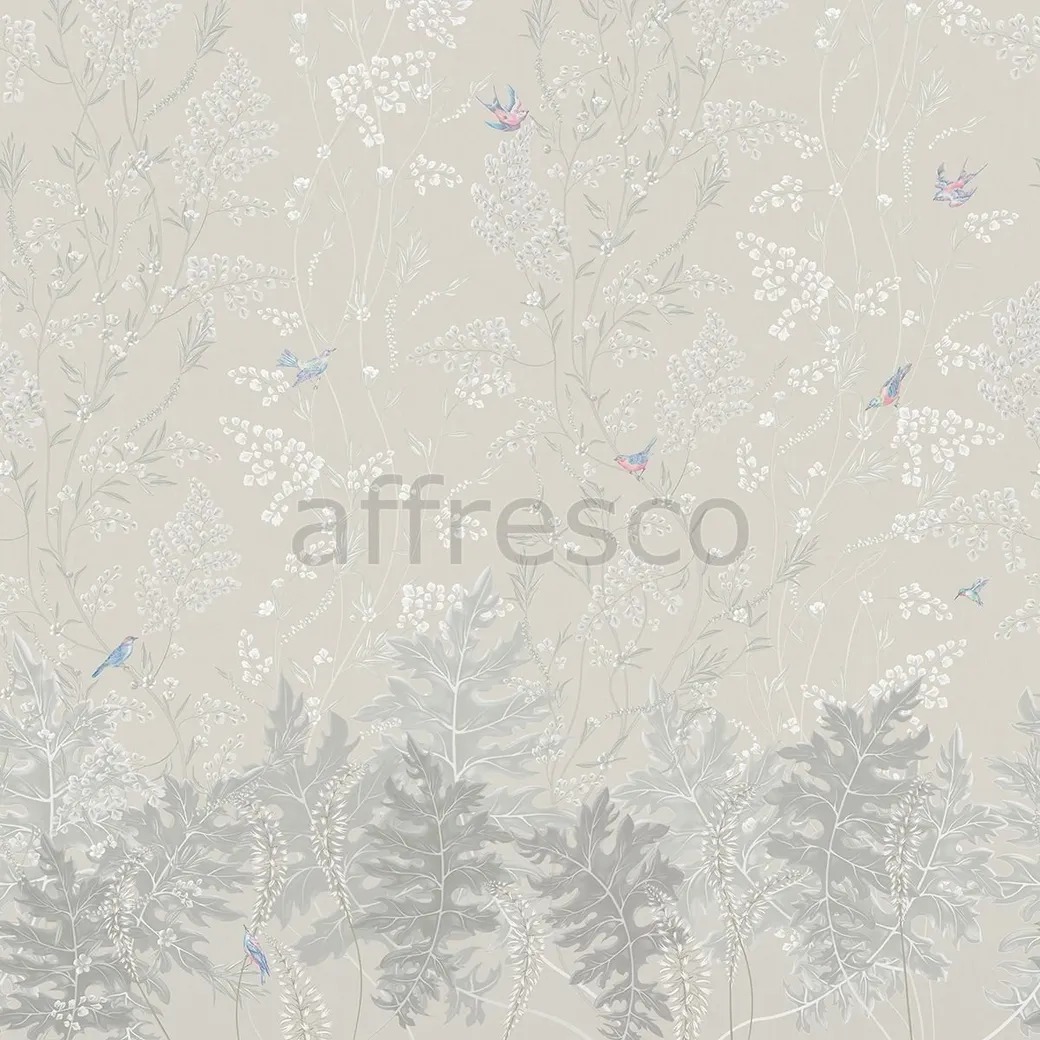 Фрески Affresco из коллекции Atmosphere представляют собой фотообои и панно с изображением птиц и растений. Цветовая гамма включает спокойные бежевые оттенки, что делает их подходящими для различных интерьеров.