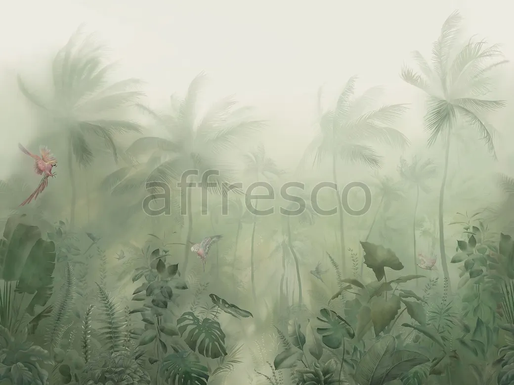 Фрески Affresco из коллекции Atmosphere — это фотообои, которые создают уникальную атмосферу в интерьере. Они выполнены на основе флизелина и оформлены в зелёных оттенках с изображениями растений и птиц. Эти фрески подойдут как для гостиной, так и для спальни.