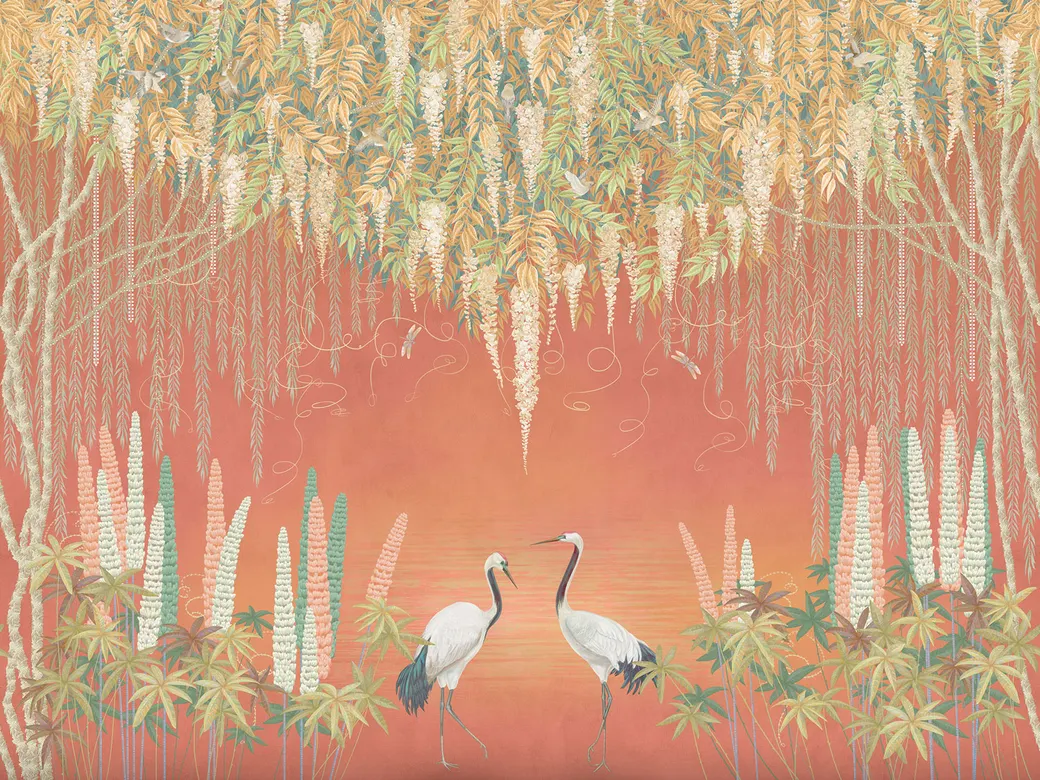 Фрески Affresco из коллекции Exclusive part 1 представляют собой уникальный элемент декора, который сочетает в себе современные технологии и эстетические решения. Данная фреска оформлена в теплых красных и оранжевых тонах с изображением птиц и растений, что позволяет создать атмосферу спокойствия и гармонии в интерьере.