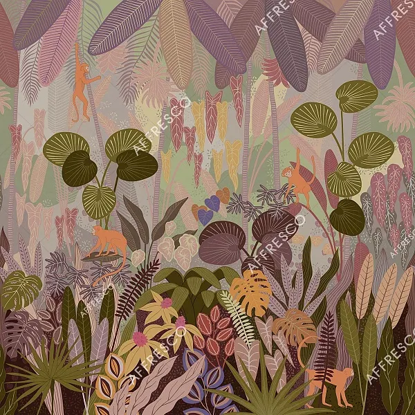 Фрески Affresco из коллекции Fantasy представляют собой декоративные панно, подходящие для оформления интерьеров гостиных и спален. Изображения животных и растений создают атмосферу уюта, придавая помещению характерный стиль.